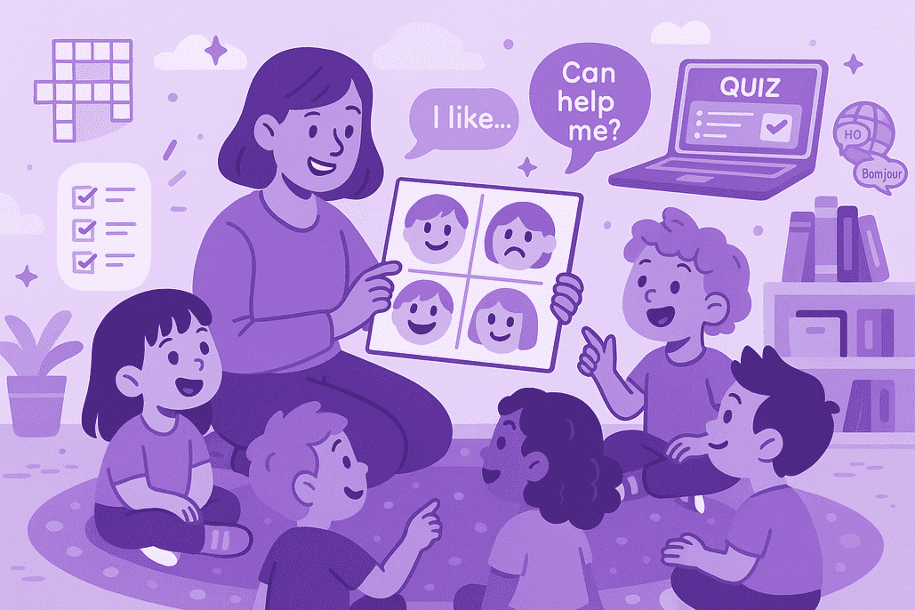 NotesEdu has created free, syllabus-aligned packs that cover AC9EFLA01 and 02, as well as everyday teaching moments in kindergarten. In less than a minute, you can download a complete lesson, launch an auto-marked quiz, and access a storyboard that helps children name feelings and share preferences.